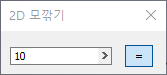 [2D 모깎기] 대화상자가 나타나면 반지름값을 10mm로 입력해주고 오른쪽 아랫부분의 모서리를 클릭해 준다. 모깎기 형상이 나타나면 대화상자의 닫기 버튼을 클릭해 준다.