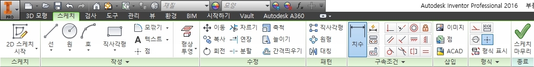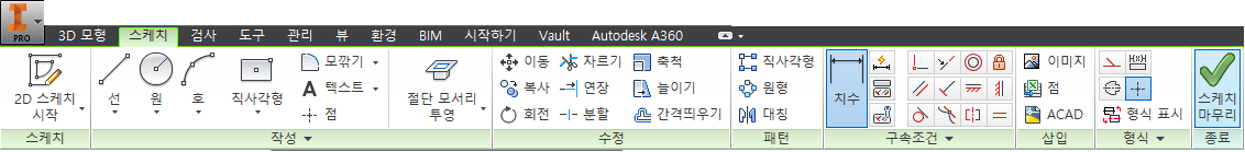 [스케치] 탭 - [종료] 패널 - [스케치 마무리] 단추를 선택한다.